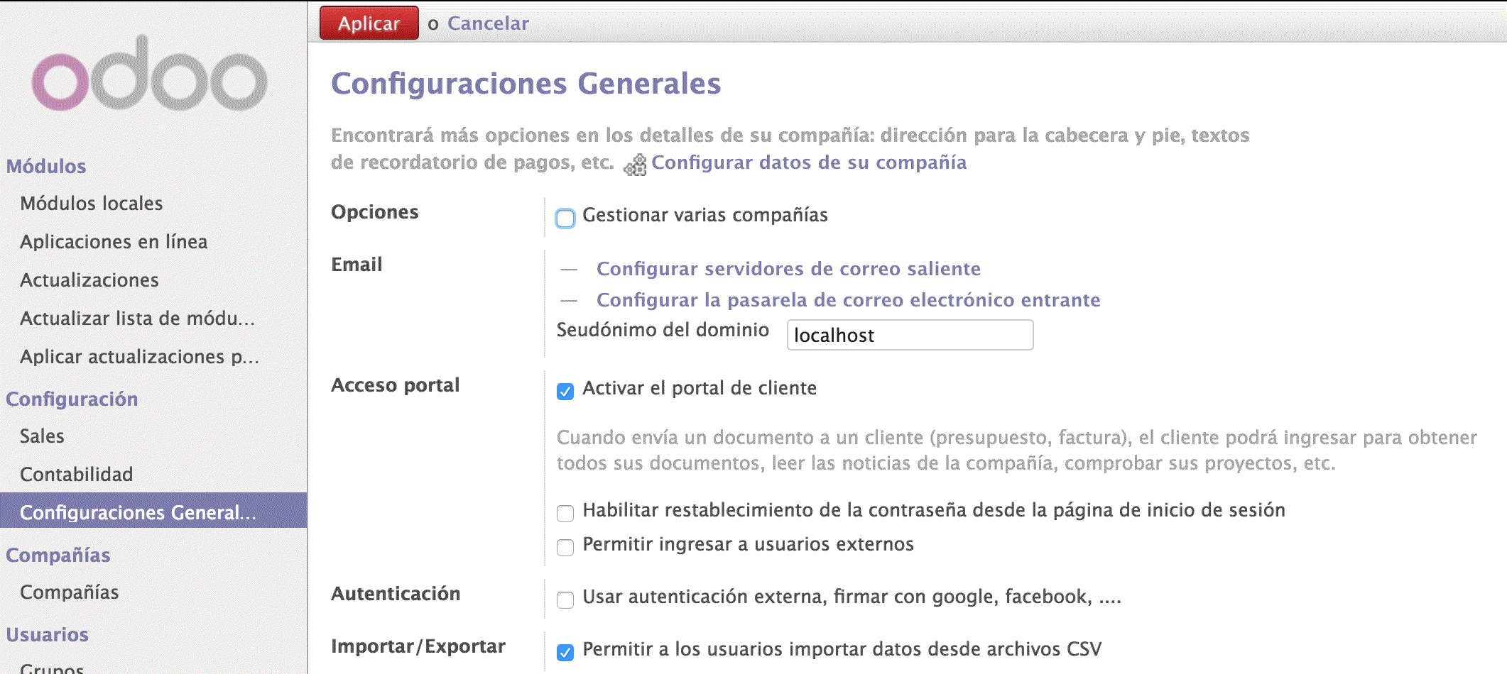 En configuración --> Configuraciones generales activaremos la opción del acceso al portal