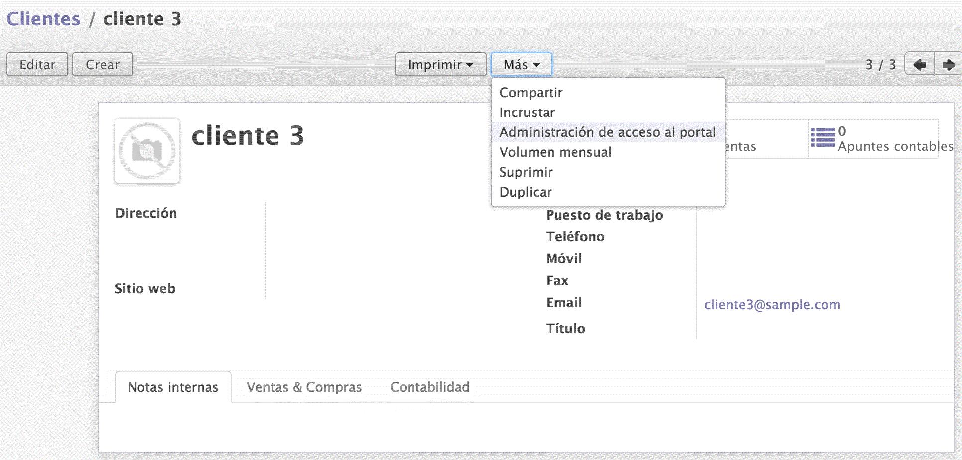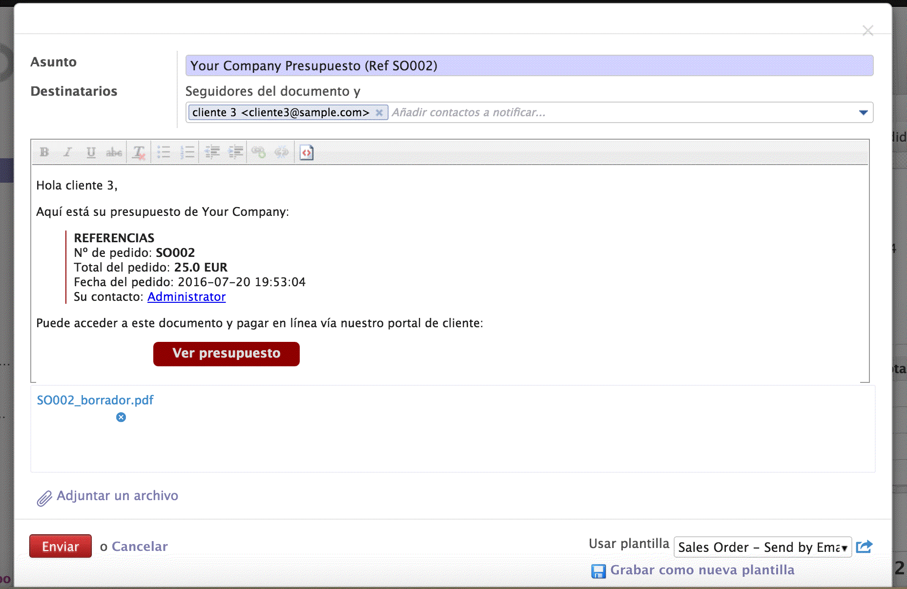 Es importante destacar que el cliente no tendrá acceso a aquellos documentos que no se hayan mandado previamente mediante la funcionalidad de envío por correo electrónico del propio odoo.