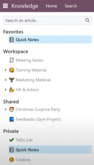 A partir del nuevo módulo incorporado en esta nueva versión 16, podremos gestionar los conocimientos de nuestra empresa. Podremos crear informes y documentos internos los cuales podrán ser leídos y editados por los mismos empleados. La nueva aplicación de Odoo llamada Conocimiento, nos permite crear o duplicar artículos y su jerarquía, para compartir el conocimiento de nuestra empresa e incluso hacerlo personalizable por todos internamente.