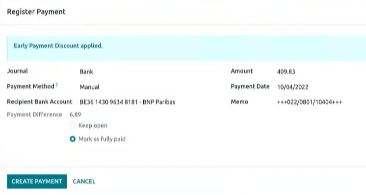 Por otro lado, el descuento por pronto pago ahora se puede establecer de inmediato en las condiciones de pago y no solo para clientes, sino también para proveedores. Al enviar una factura a nuestros clientes, tendremos la información necesaria en la parte inferior de la factura para que nuestros clientes tengan claro cuándo necesitan pagar para poder beneficiarse de este descuento por pronto pago. Lo mismo con los proveedores.