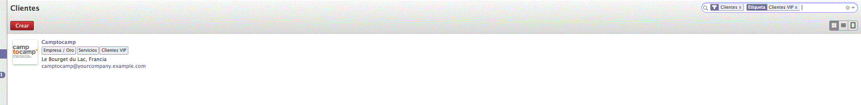Categoría de empresa : Es la categoría asociada y la etiqueta que después aparecerá como en la ficha del cliente. Le asignamos 'Clientes VIP'.