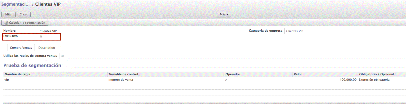 En caso que tengamos el check 'Exclusivo' en la configuración de la segmentación, una vez calculemos la segmentación , eliminará la categoría en los clientes que no cumplan con el criterio de la regla.