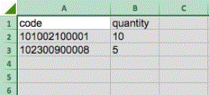 Antes de proceder a la importación del inventario necesitamos un archivo con los datos. Dicho archivo se debe realizar en Excel y debe contener una columna llamada code con el código del producto (referencia interna) y otra columna llamada quantity con la cantidad disponible para dicho producto. Finalmente, hay que guardar el archivo en formato .csv y ya está listo.