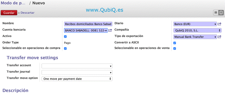 Al crear un modo de pago deberemos introducir obligatoriamente:
