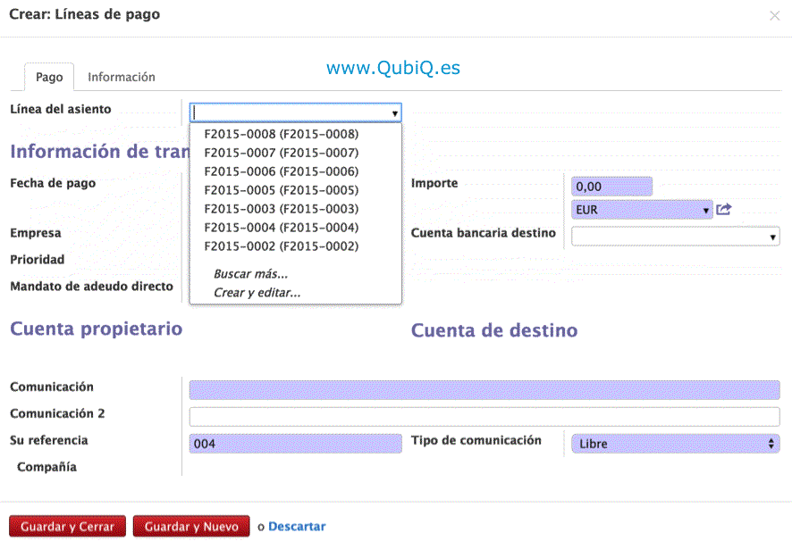 • Diario: Diario donde queremos contabilizar los pagos. Es interesante crear uno por cada banco