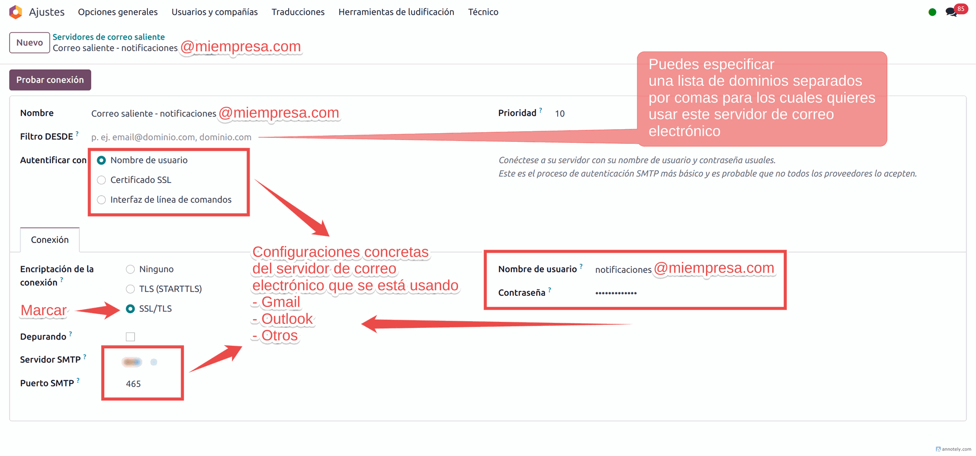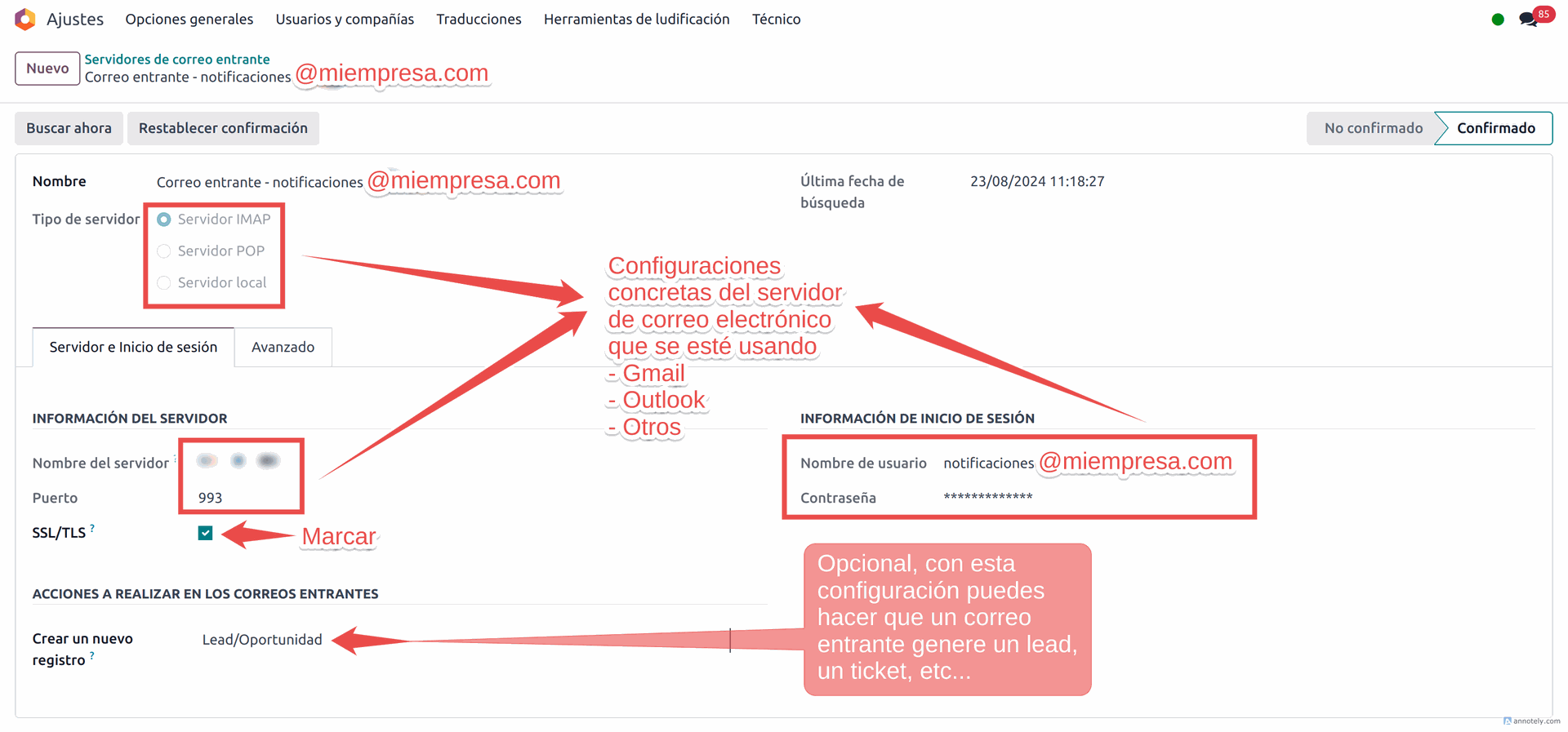 Configuraci贸n correo electr贸nico Odoo 17.0